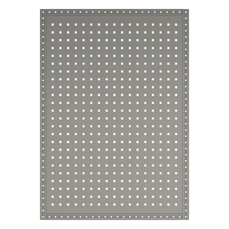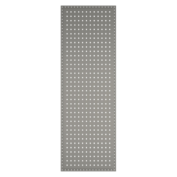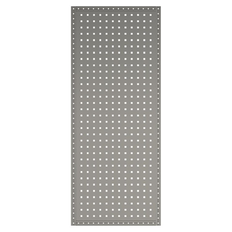 Les parois latérales d'étagères et extensions peuvent être équipées de panneaux perforés. Les rails en T intégrés aux profilés sont utilisés pour arrimer le chargement, fixer les accessoires et faciliter les montages en superposition. Les panneaux perforés permettent de fixer facilement des outils. Des arrêts de charge/supports peuvent être utilisés soit pour empêcher les objets verticaux de glisser dans le couloir central du véhicule, soit comme support supplémentaire pour le système d'aménagement.