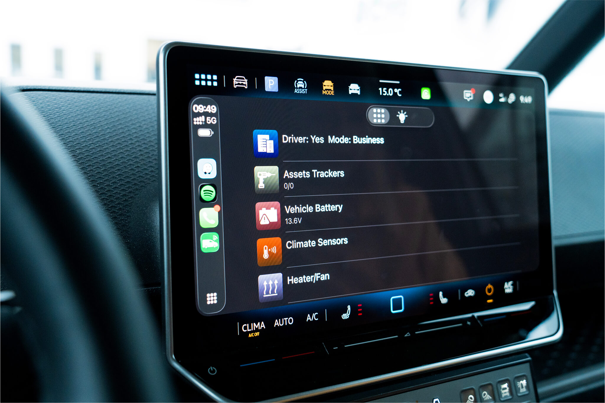 Grâce à cette nouvelle intégration, les utilisateurs peuvent contrôler et surveiller leur système Modul-Connect directement depuis l’écran du véhicule. L’application reste installée sur le smartphone de l’utilisateur mais s’affiche en miroir sur l’écran de bord. Ce fonctionnement permet une interaction en temps réel sans manipuler le téléphone, renforçant ainsi la sécurité, la praticité et l’efficacité sur la route.