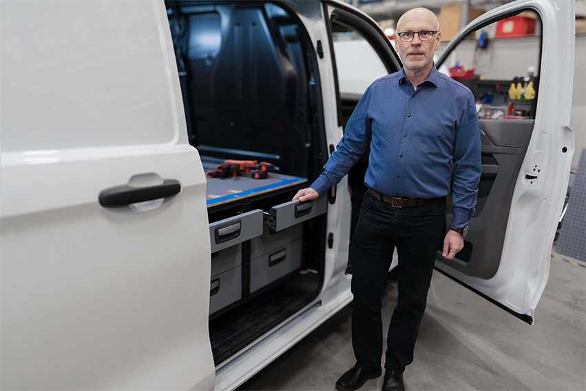 Anders Carlsson, directeur technique chez Modul-System, travaille dans le développement de produits automobiles depuis le début des années 1990 et fait partie de Modul-System depuis 2000. Fort de plusieurs décennies d'expérience dans l'aménagement intérieur de véhicules et l'ingénierie, il est spécialisé dans le développement de solutions d’aménagement durables, légères et écologiques pour les véhicules utilitaires.