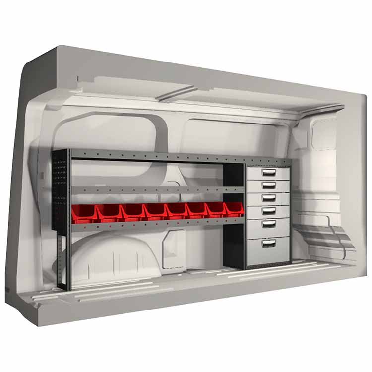 Ce système d’aménagement a été spécialement conçu pour assurer une adaptation optimale ainsi que la meilleure fonctionnalité et sécurité possible. Il a été développé pour un usage professionnel, est flexible et est destiné à des métiers de services dans des domaines variés. Toutes les étagères sont équipées de tapis caoutchouc, et tous les tiroirs de tapis mousse. Les composants d’assemblage et de fixation sont inclus.