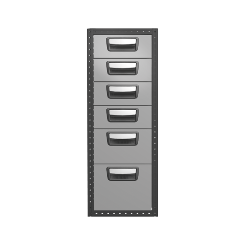 Chaque tiroir est équipé en version standard de glissières sur roulements à billes et sa charge maximale est de 30 kg, tandis que la charge totale par bloc est de 100 kg. Les tiroirs peuvent être ouverts à fond et sont équipés d'arrêtoirs. Pour une utilité maximum, le bloc-tiroirs peut être équipé d'accessoires tels que fond en mousse, séparations et casiers en plastique. Afin d'optimiser le poids, des tôles de fermeture acier et des panoplies sont disponibles en option.
