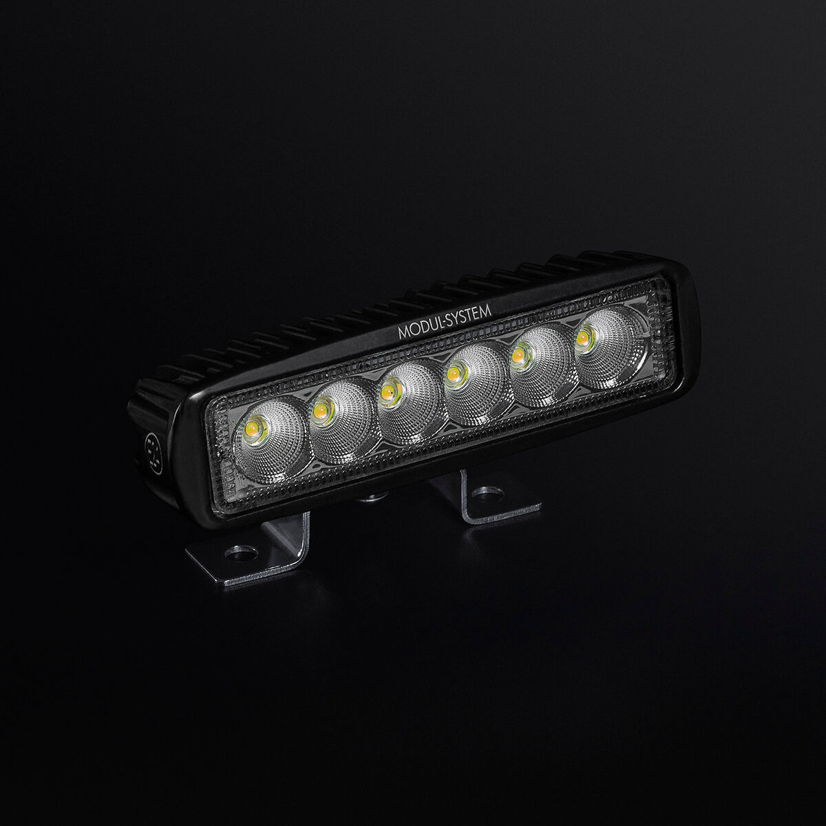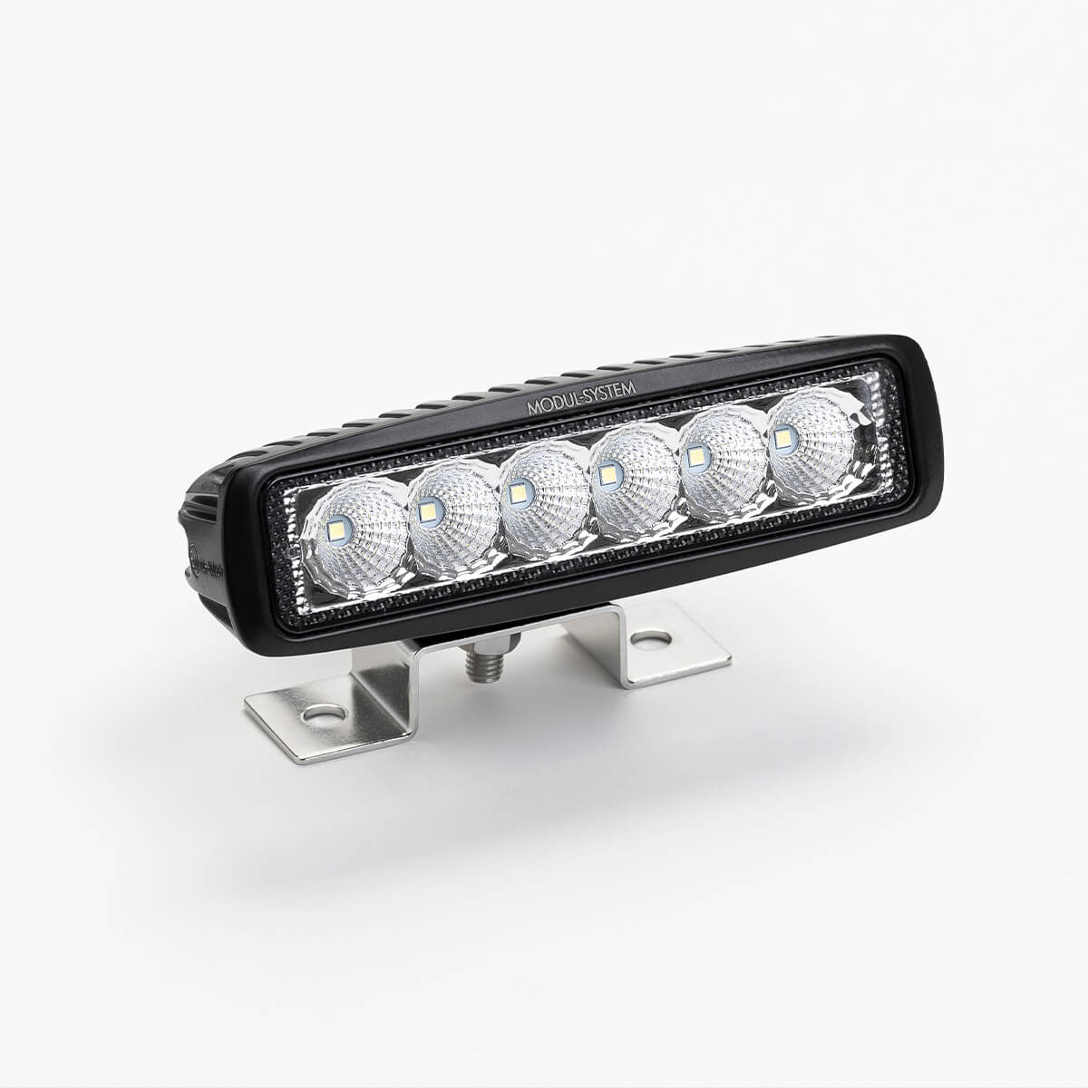 Feu de travail 6 LED, éclairage blanc. Fournit avec patte de fixation pour une installation facile sur le véhicule. Le produit est IP67 et permet une utilisation extérieure, il est certifié E-mark.