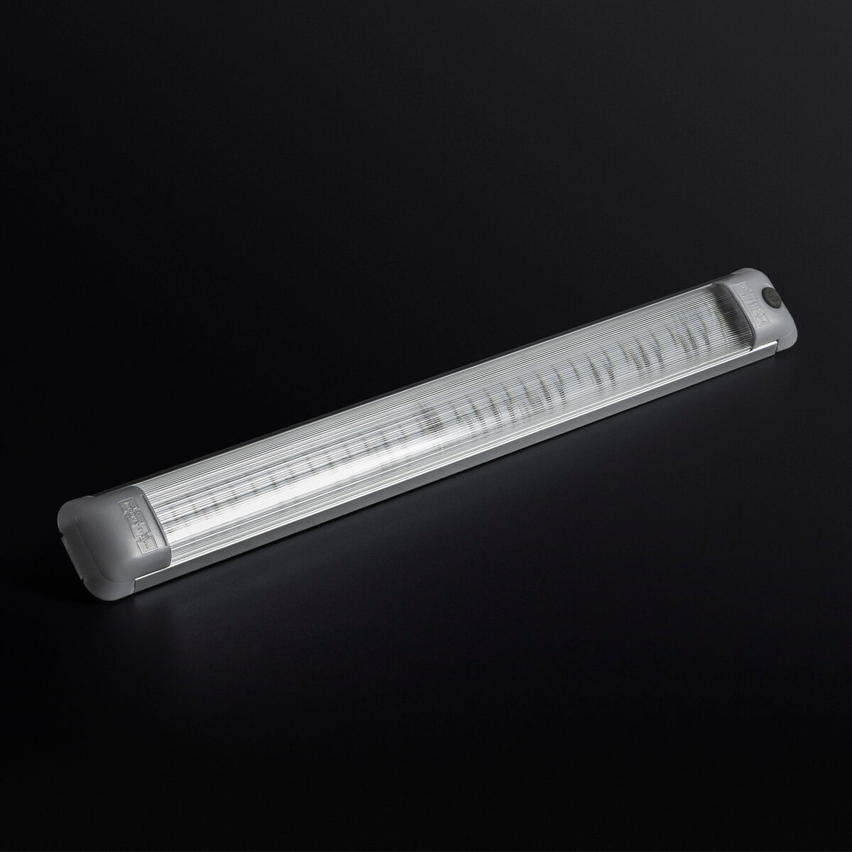 Cette lampe est de conception robuste avec un rail en aluminium et une protection en polycarbonate. L’éclairage est fixé de manière très simple au plafonnier du véhicule ou sur un établi au moyen de vis ou d’adhésif.