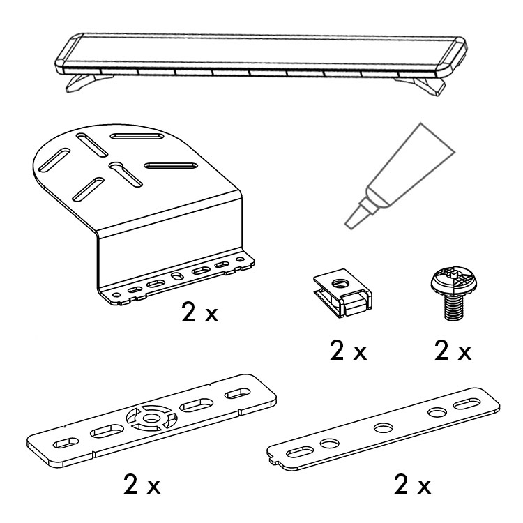 Kit comprenant un éclairage sur barre et un ensemble complet de supports pour une installation directe sur les points de fixation OEM du véhicule. En utilisant les points de fixation intégrés, aucun perçage inutile ne doit être effectué sur la carrosserie du véhicule, éliminant ainsi le risque de corrosion et protégeant la valeur résiduelle du véhicule.