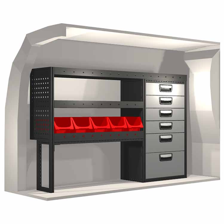Ce système d’aménagement a été spécialement conçu pour assurer une adaptation optimale ainsi que la meilleure fonctionnalité et sécurité possible. Il a été développé pour un usage professionnel, est flexible et est destiné à des métiers de services dans des domaines variés. Toutes les étagères sont équipées de tapis caoutchouc, et tous les tiroirs de tapis mousse. Les composants d’assemblage et de fixation sont inclus.