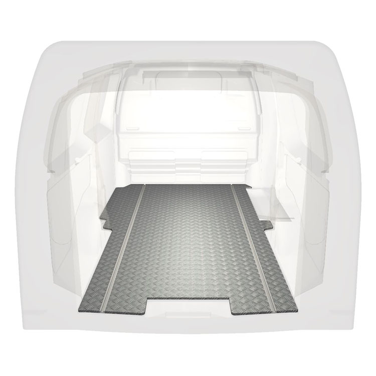 Lightweight and robust extra long floor for Citroën Jumpy / Peugeot Expert / Toyota ProAce with anti-slip aluminum tread plate and cargo rails (longitudinal) for quick and safe installation of racking systems and other accessories.