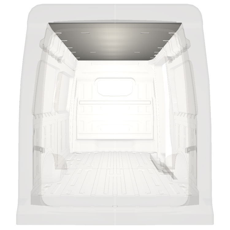 Revêtement léger pour toit d’une Volkswagen Crafter / MAN TGE . Le revêtement de toit créera une finition de travail lumineuse à l'intérieur et un environnement professionnel convivial.