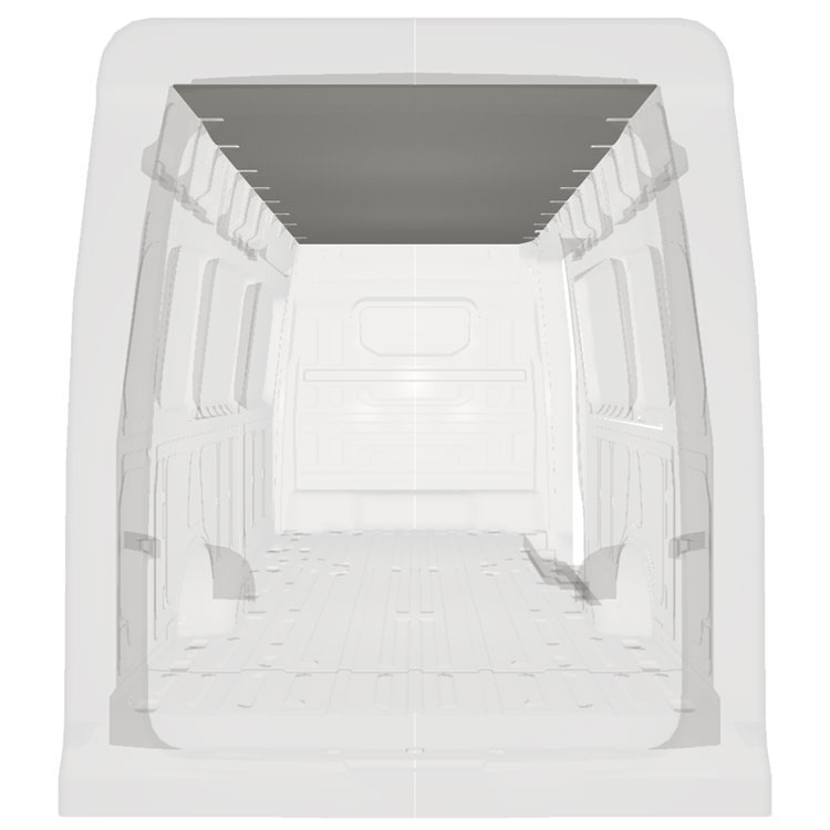 Revêtement léger pour toit d’une Volkswagen Crafter / MAN TGE . Le revêtement de toit créera une finition de travail lumineuse à l'intérieur et un environnement professionnel convivial.