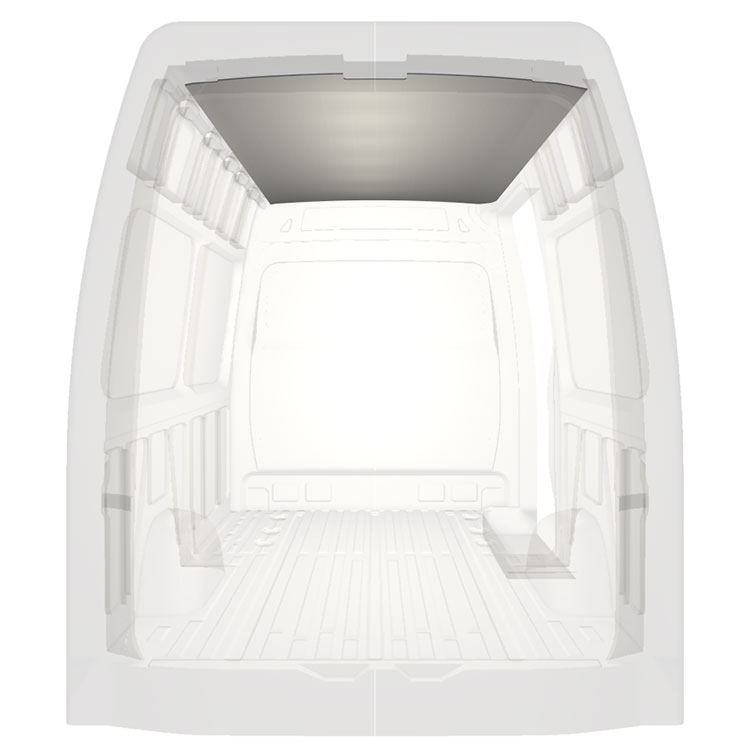 Revêtement léger pour toit d’une Mercedes Sprinter. Le revêtement de toit créera une finition de travail lumineuse à l'intérieur et un environnement professionnel convivial.