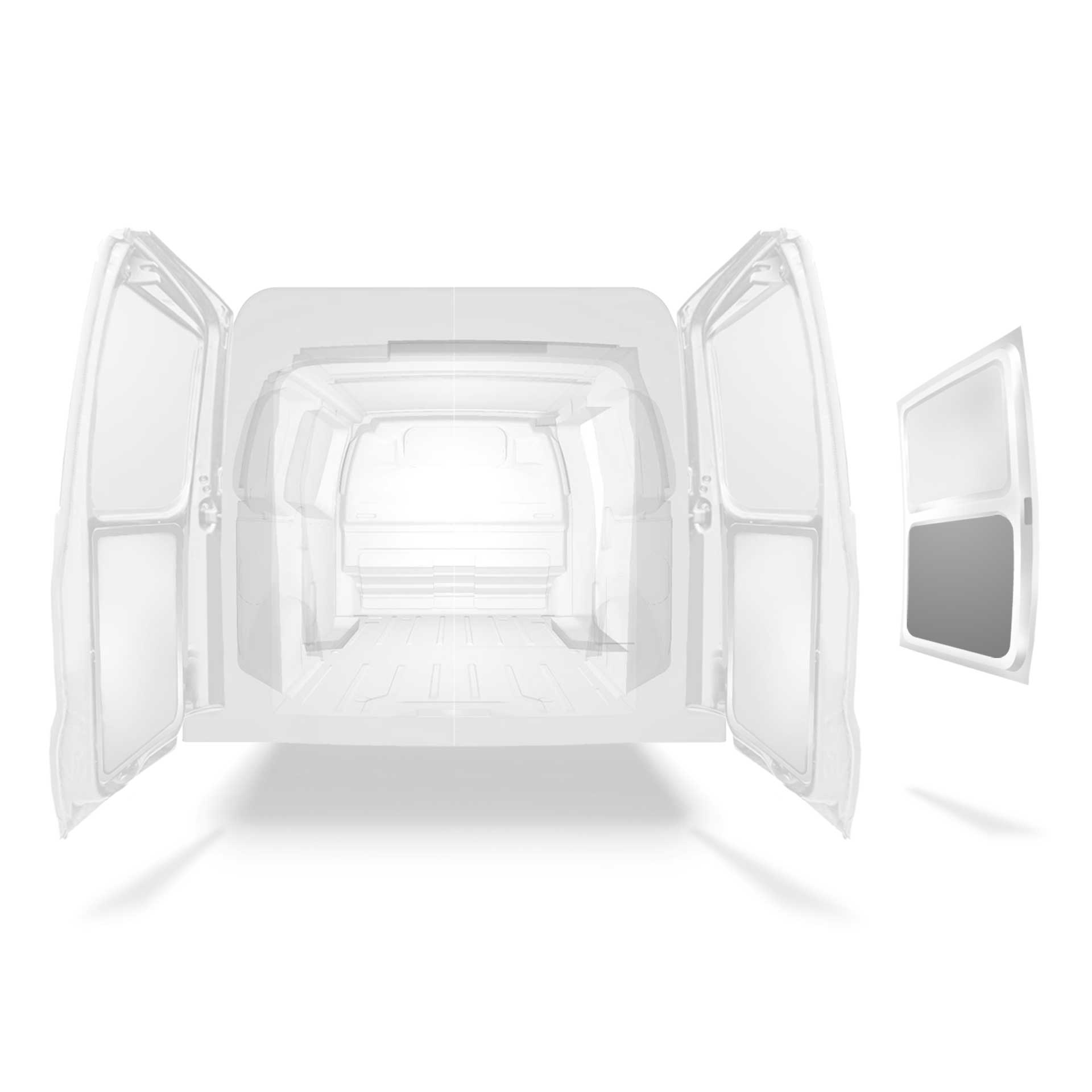 Revêtement léger pour la partie inférieure de la porte latérale d’un Citroën Jumpy / Peugeot Expert / Toyota ProAce équipé d’une porte latérale sur la droite. Le revêtement réduit l’usure normale de l’intérieur et contribue à maintenir la valeur résiduelle de l’utilitaire.