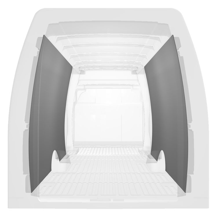 Revêtement entièrement léger pour les parois intérieures d’une Iveco Daily avec doubles portes latérales. Les parois créeront un environnement professionnel lumineux et convivial et se nettoient facilement.