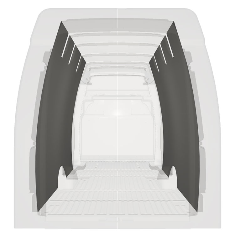 Afin d’optimiser le poids, les revêtements pré-découpés sont fabriqués de manière à adapter uniquement l’espace entre les poutres du véhicule, veillant ainsi à ne pas être gênant et à optimiser l’espace.