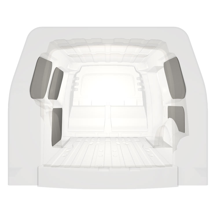 Revêtement léger pré-découpé pour les parois intérieures d’une Volkswagen Caddy Cargo Maxi 21- avec une porte latérale à droite. Les parois créeront un environnement professionnel lumineux et convivial et se nettoient facilement.
