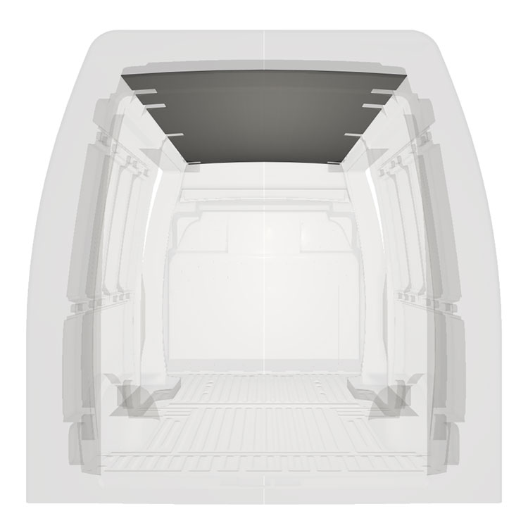 Revêtement léger pour toit d’une Iveco Daily. Le revêtement de toit créera une finition de travail lumineuse à l'intérieur et un environnement professionnel convivial.