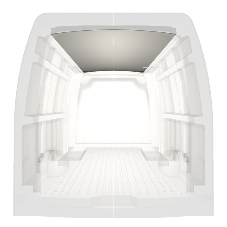 Revêtement léger pour toit d’une Renault Master / Opel Movano / Nissan NV400. Le revêtement de toit créera une finition de travail lumineuse à l'intérieur et un environnement professionnel convivial.