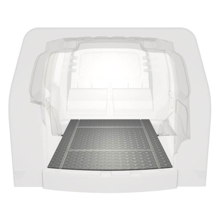 Plancher léger et robuste avec rails transversaux pour une Volkswagen Caddy Cargo 20- avec une plaque de roulement en aluminium antidérapant et des rails de chargement (longitudinaux et transversaux) pour une installation rapide et sûre des systèmes de rayonnage et autres accessoires.