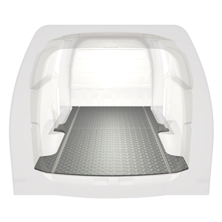 Plancher standard ultra-léger et robuste pour une Hyundai H1 avec une plaque de roulement en aluminium antidérapant et des rails de chargement (longitudinaux) pour une installation rapide et sûre des systèmes de rayonnage et autres accessoires.