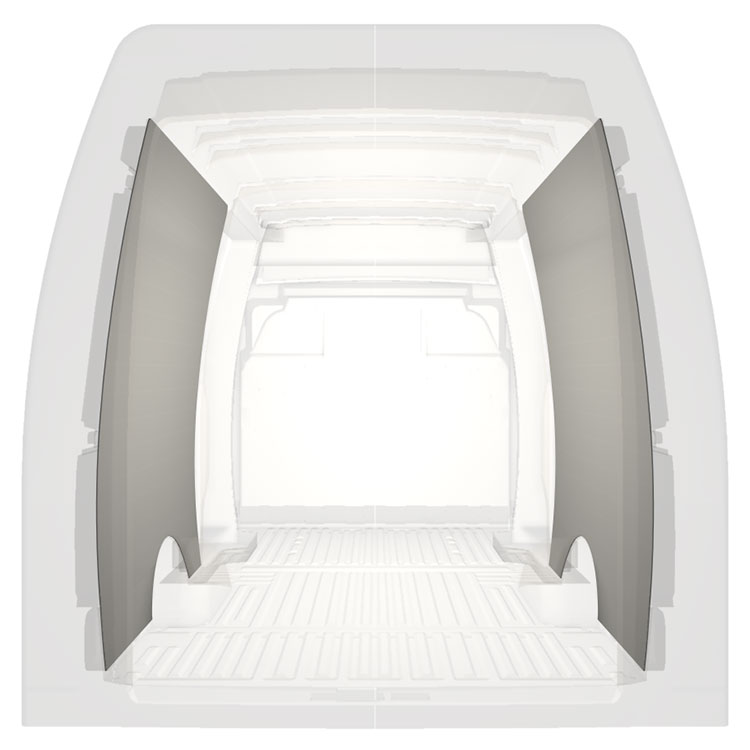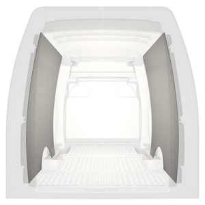 Revêtement entièrement léger pour les parois intérieures d’une Iveco Daily avec doubles portes latérales. Les parois créeront un environnement professionnel lumineux et convivial et se nettoient facilement.