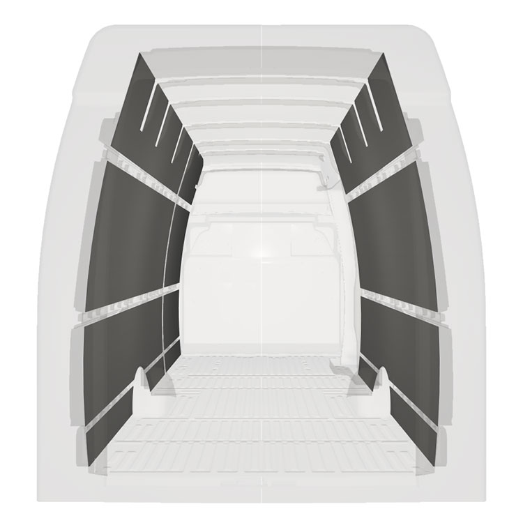 Afin d’optimiser le poids, les revêtements pré-découpés sont fabriqués de manière à adapter uniquement l’espace entre les poutres du véhicule, veillant ainsi à ne pas être gênant et à optimiser l’espace.