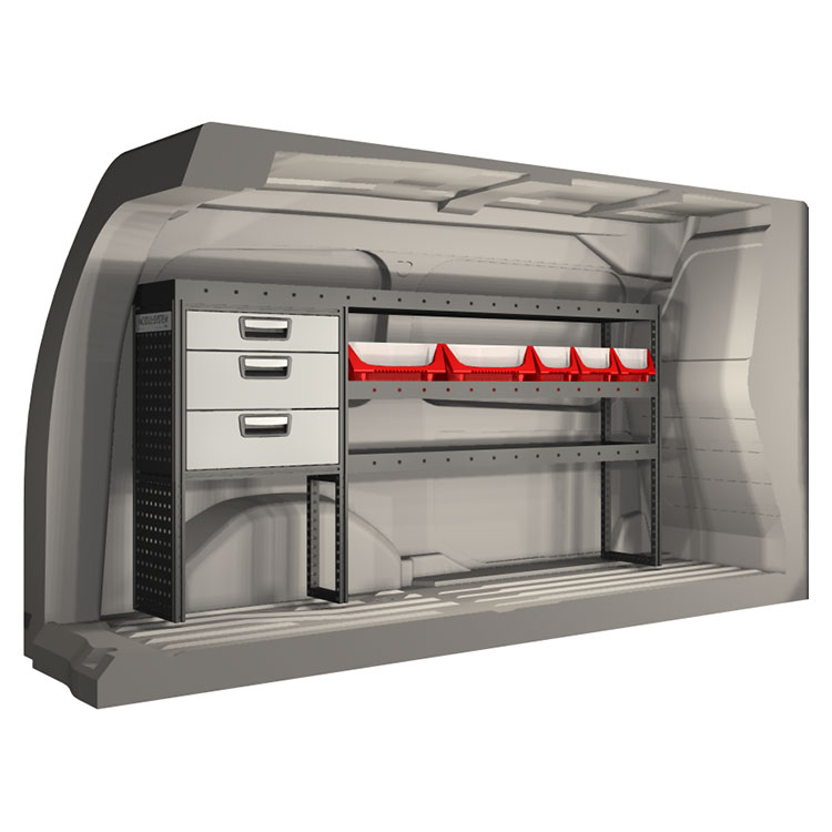 Ce système d’aménagement a été spécialement conçu pour assurer une adaptation optimale ainsi que la meilleure fonctionnalité et sécurité possible. Il a été développé pour un usage professionnel, est flexible et est destiné à des métiers de services dans des domaines variés. Toutes les étagères sont équipées de tapis caoutchouc, et tous les tiroirs de tapis mousse. Les composants d’assemblage et de fixation sont inclus.