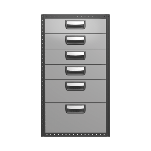 Chaque tiroir est équipé en version standard de glissières sur roulements à billes et sa charge maximale est de 30 kg, tandis que la charge totale par bloc est de 100 kg. Les tiroirs peuvent être ouverts à fond et sont équipés d'arrêtoirs. Pour une utilité maximum, le bloc-tiroirs peut être équipé d'accessoires tels que fond en mousse, séparations et casiers en plastique. Afin d'optimiser le poids, des tôles de fermeture acier et des panoplies sont disponibles en option.