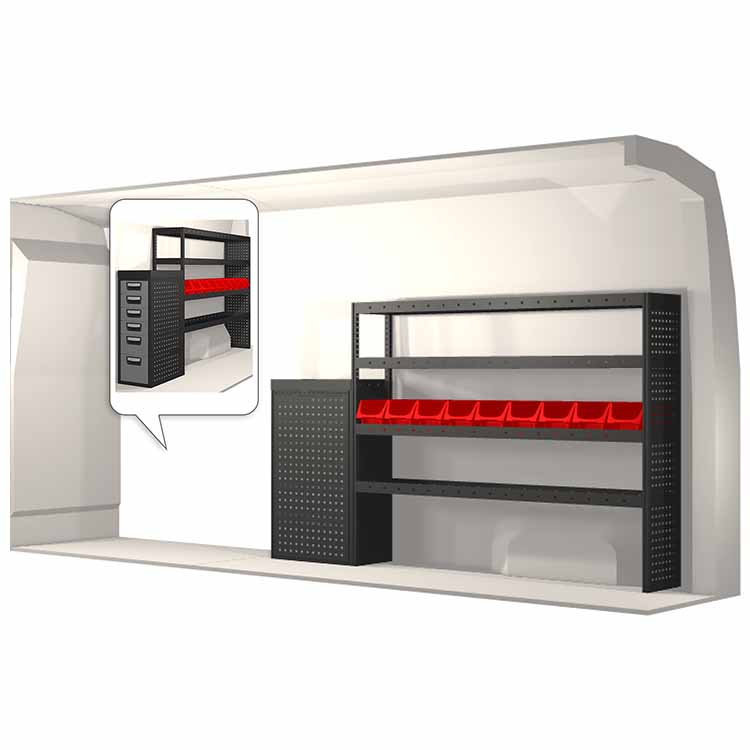 Ce système d’aménagement a été spécialement conçu pour assurer une adaptation optimale ainsi que la meilleure fonctionnalité et sécurité possible. Il a été développé pour un usage professionnel, est flexible et est destiné à des métiers de services dans des domaines variés. Toutes les étagères sont équipées de tapis caoutchouc, et tous les tiroirs de tapis mousse. Les composants d’assemblage et de fixation sont inclus.