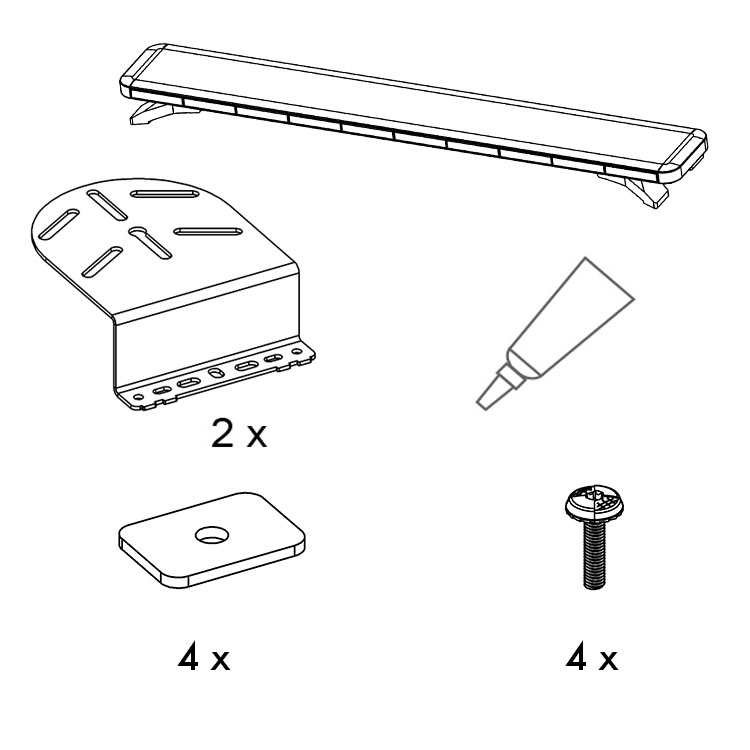 Kit comprenant un éclairage sur barre et un ensemble complet de supports pour une installation directe sur les points de fixation OEM du véhicule. En utilisant les points de fixation intégrés, aucun perçage inutile ne doit être effectué sur la carrosserie du véhicule, éliminant ainsi le risque de corrosion et protégeant la valeur résiduelle du véhicule.