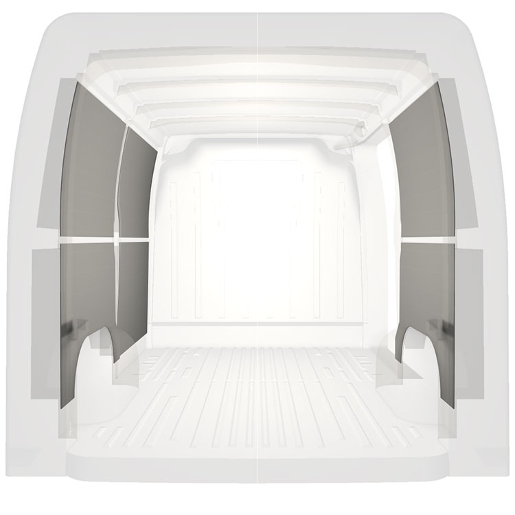 Afin d’optimiser le poids, les revêtements pré-découpés sont fabriqués de manière à adapter uniquement l’espace entre les poutres du véhicule, veillant ainsi à ne pas être gênant et à optimiser l’espace.