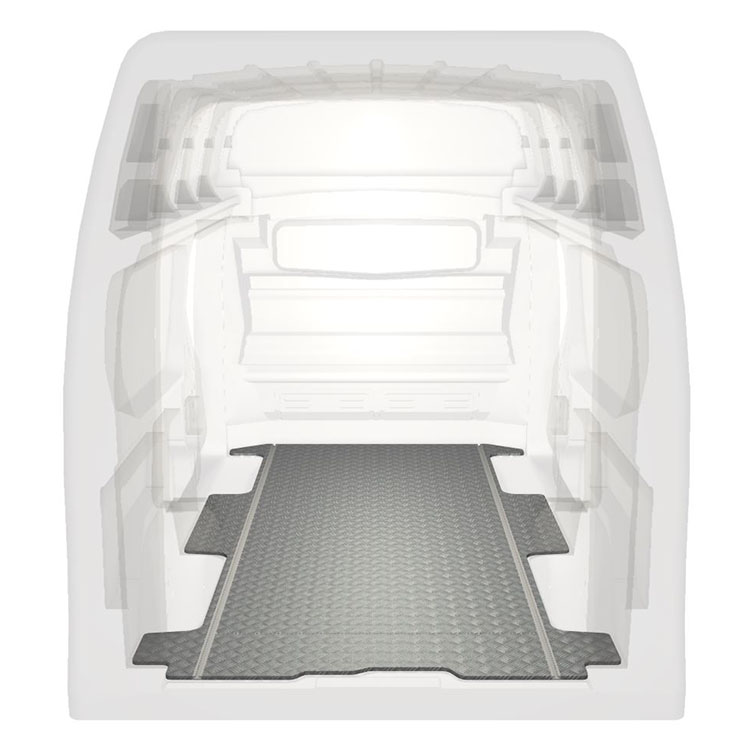 Plancher très long léger et robuste pour une Renault Trafic / Opel Vivaro / Fiat Talento / Nissan NV300 avec une plaque de roulement en aluminium antidérapant et des rails de chargement (longitudinaux) pour une installation rapide et sûre des systèmes de rayonnage et autres accessoires.