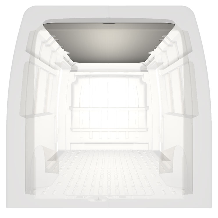 Revêtement léger pour toit d’une Citroën Jumper / Peugeot Boxer / Fiat Ducato. Le revêtement de toit créera une finition de travail lumineuse à l'intérieur et un environnement professionnel convivial.