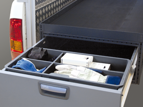 Ce système d’aménagement a été spécialement conçu pour assurer une adaptation optimale ainsi que la meilleure fonctionnalité et sécurité possible. Il a été développé pour un usage professionnel, est flexible et est destiné à des métiers de services dans des domaines variés. Toutes les étagères sont équipées de tapis caoutchouc, et tous les tiroirs de tapis mousse. Les composants d’assemblage et de fixation sont inclus.
