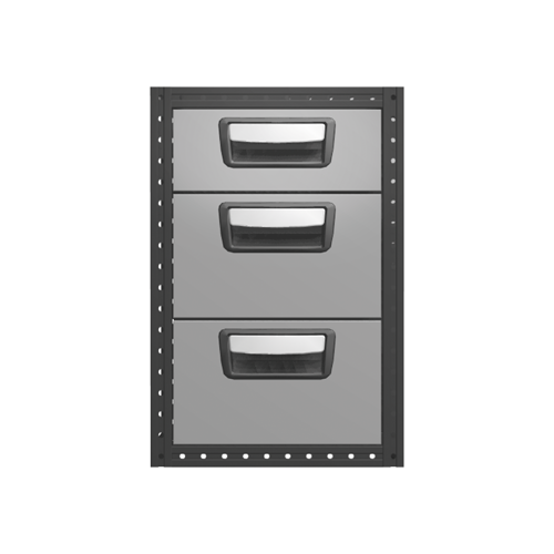 Chaque tiroir est équipé en version standard de glissières sur roulements à billes et sa charge maximale est de 30 kg, tandis que la charge totale par bloc est de 100 kg. Les tiroirs peuvent être ouverts à fond et sont équipés d'arrêtoirs. Pour une utilité maximum, le bloc-tiroirs peut être équipé d'accessoires tels que fond en mousse, séparations et casiers en plastique. Afin d'optimiser le poids, des tôles de fermeture acier et des panoplies sont disponibles en option.