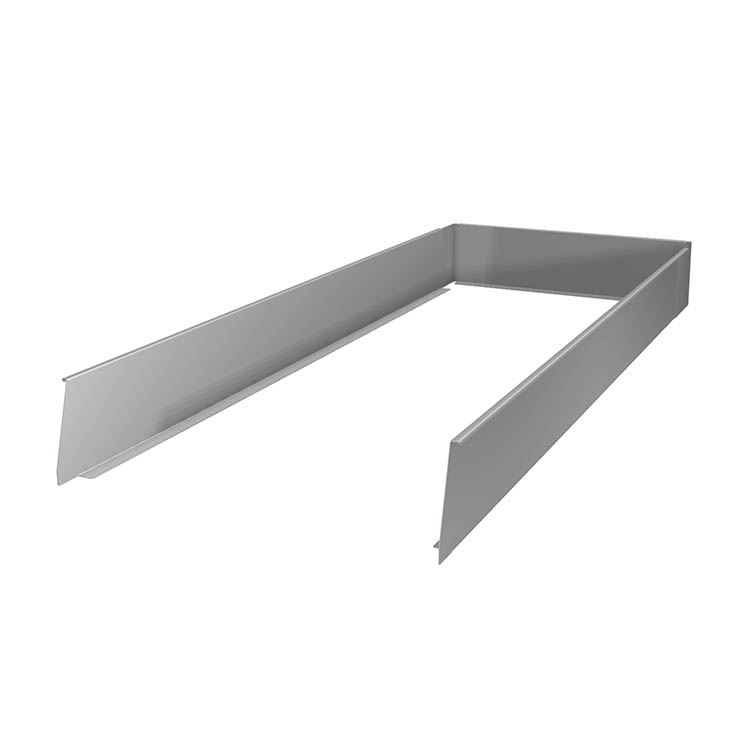 Le rebord du plateau de chargement est monté sur les rails en T du plateau et permet de s’assurer que les produits restent solidement fixés au plateau. Le rebord comprend trois côtés par défaut, et la face avant est proposée en option.