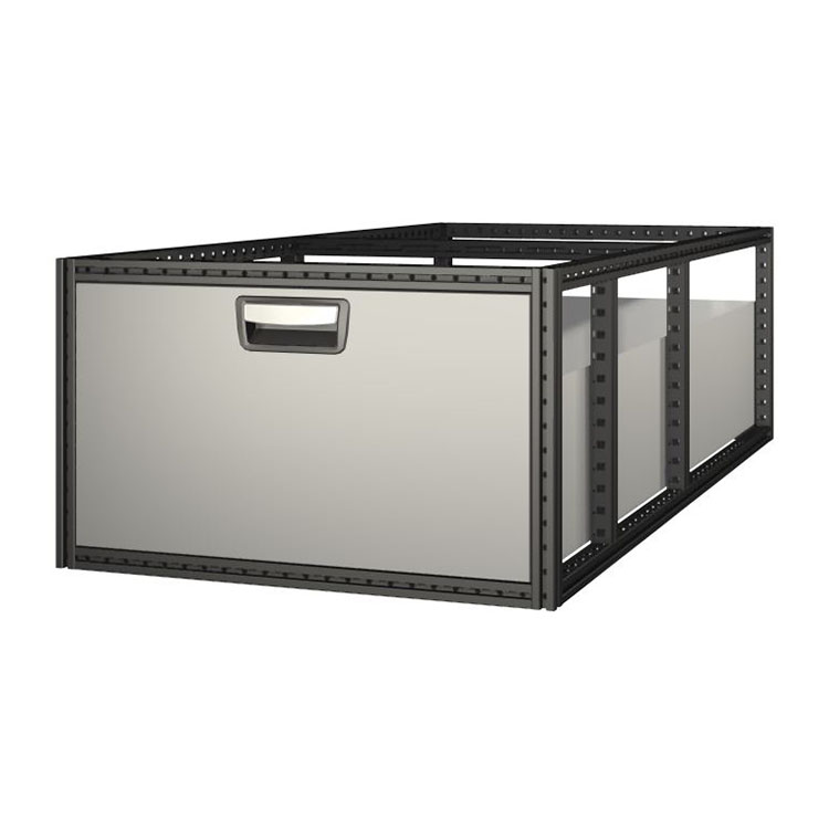 Les blocs-tiroirs extra-longs ont une structure en acier ultra-haute résistance et des tiroirs en aluminium. Les tiroirs sont équipés de roulements à billes en standard et la combinaison de roulements fixes et flexibles les rend stables et faciles à utiliser.