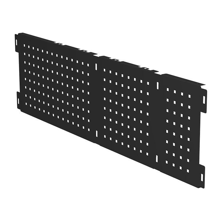Panoplie pour bloc-tiroirs extra-long. Elle protège le tiroir tout en améliorant son aspect. La panoplie est perforée avec des trous de 9 mm espacés de 34 mm, ce qui permet de fixer des porte-outils et autres accessoires. Installé à l’aide de vis (non incluses).