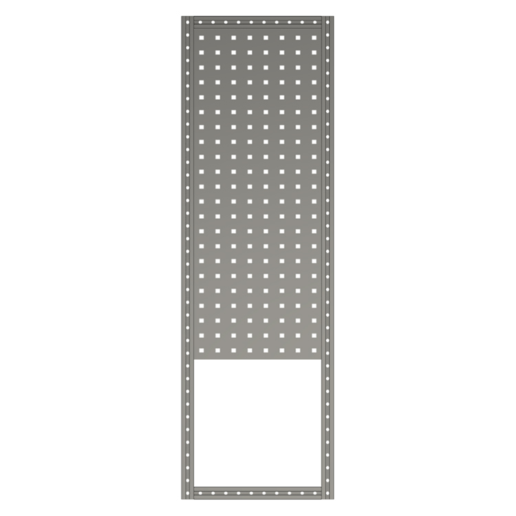Echelle avec panoplie intégrée courte compatible avec un support étau coulissant. Les rails en" T" intégrés dans les profilés permettent la sécurisation de l'arrimage des charges, la fixation des accessoires ainsi qu'une modularité de montage en superposition.
