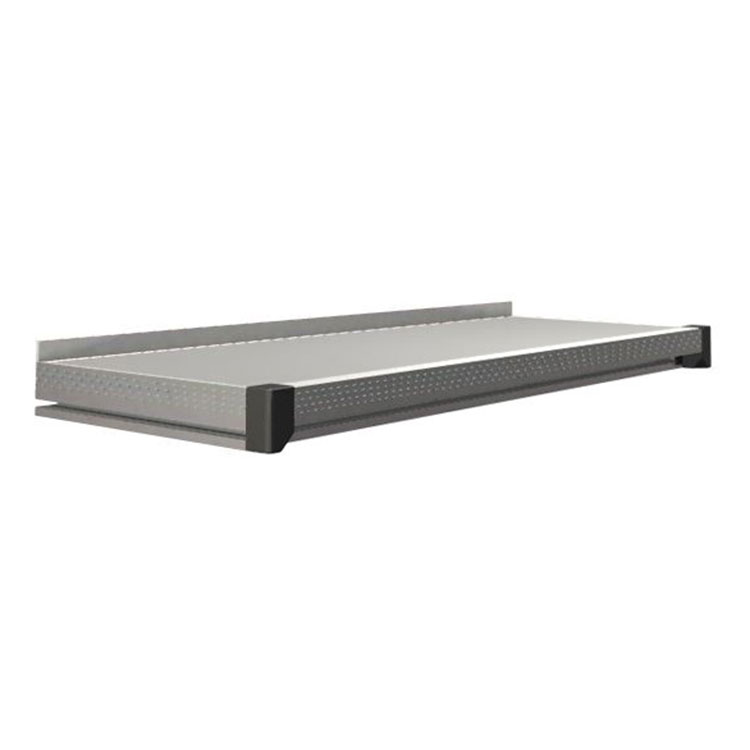 Le profil des bordures en aluminium améliore la robustesse et donne à l’établi une belle finition. Le bord arrière plus élevé empêche les objets de tomber derrière la table. L’installation est facilitée grâce aux rails en T intégrés des profilés aluminium.