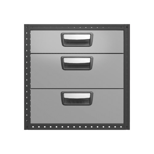 Chaque tiroir est équipé en version standard de glissières sur roulements à billes et sa charge maximale est de 60 kg, tandis que la charge totale par bloc est de 150 kg.