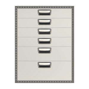 Chaque tiroir est équipé en version standard de glissières sur roulements à billes et sa charge maximale est de 30 kg, tandis que la charge totale par bloc est de 100 kg. Les tiroirs peuvent être ouverts à fond et sont équipés d'arrêtoirs. Pour une utilité maximum, le bloc-tiroirs peut être équipé d'accessoires tels que fond en mousse, séparations et casiers en plastique. Afin d'optimiser le poids, des tôles de fermeture acier et des panoplies sont disponibles en option.