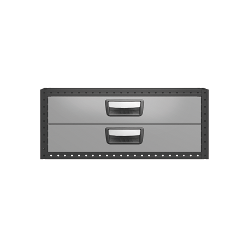 Chaque tiroir est équipé en version standard de glissières sur roulements à billes et sa charge maximale est de 30 kg, tandis que la charge totale par bloc est de 100 kg. Les tiroirs peuvent être ouverts à fond et sont équipés d'arrêtoirs. Pour une utilité maximum, le bloc-tiroirs peut être équipé d'accessoires tels que fond en mousse, séparations et casiers en plastique. Afin d'optimiser le poids, des tôles de fermeture acier et des panoplies sont disponibles en option.