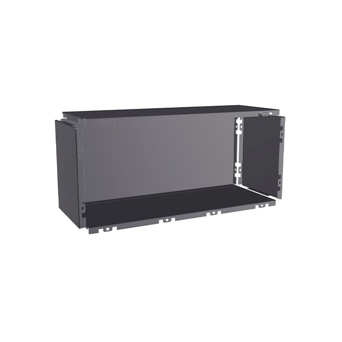 Kit d'armoire comprenant une base, une partie supérieure, des côtés et un fond, conçu pour transformer une ossature en armoire horizontale. Le kit est complet, il comprend également les éléments de fixation et il est conçu pour l'ossature d'armoire 59560-03.