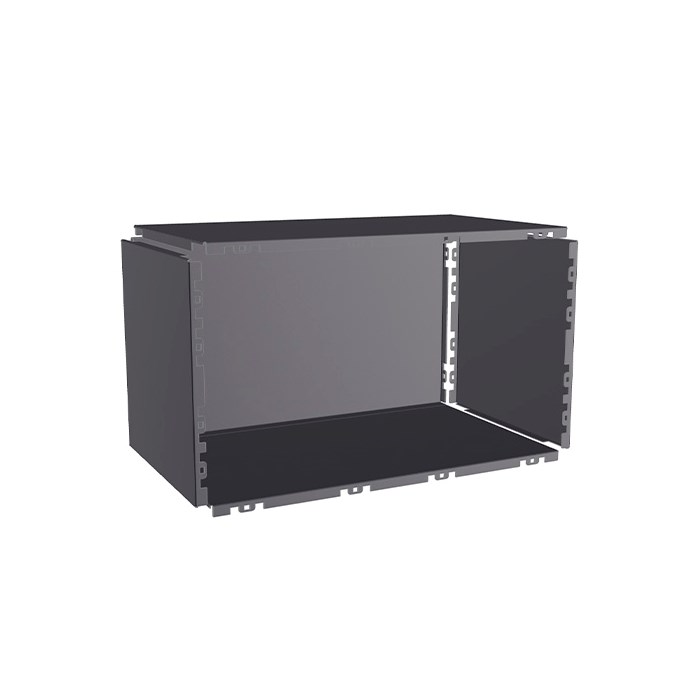 Kit d'armoire comprenant une base, une partie supérieure, des côtés et un fond, conçu pour transformer une ossature en armoire horizontale. Le kit est complet, il comprend également les éléments de fixation et il est conçu pour l'ossature d'armoire 59563-03.