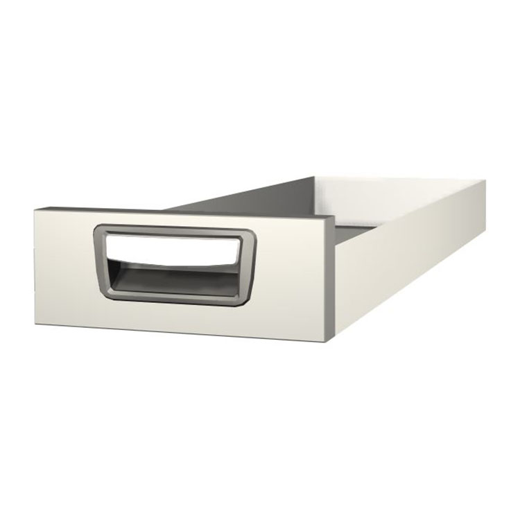 Tiroir extra-long robuste à monter dans une structure de bloc-tiroirs. Le tiroir en aluminium possède des roulements à billes en standard et la combinaison de roulements fixes et flexibles rend le tiroir stable et facile à utiliser.