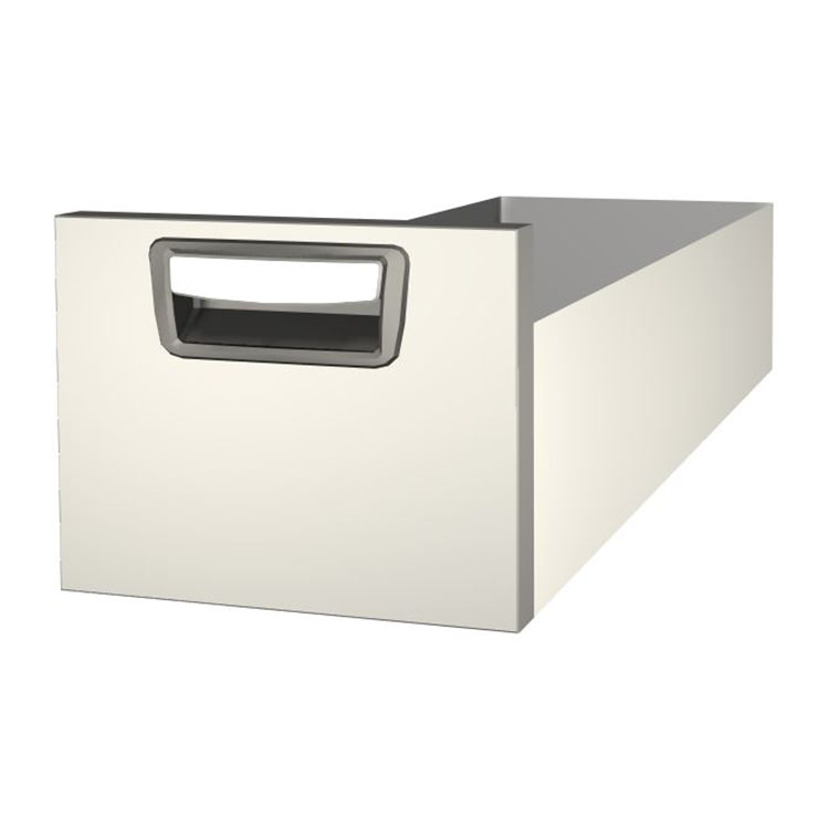 Tiroir extra-long robuste à monter dans une structure de bloc-tiroirs. Le tiroir en aluminium possède des roulements à billes en standard et la combinaison de roulements fixes et flexibles rend le tiroir stable et facile à utiliser.