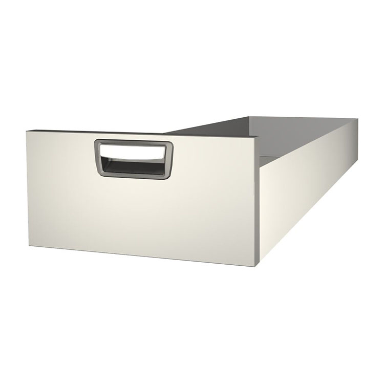 Tiroir extra-long robuste à monter dans une structure de bloc-tiroirs. Le tiroir en aluminium possède des roulements à billes en standard et la combinaison de roulements fixes et flexibles rend le tiroir stable et facile à utiliser.