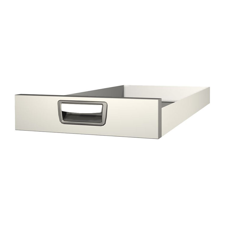 Tiroir extra-long robuste à monter dans une structure de bloc-tiroirs. Le tiroir en aluminium possède des roulements à billes en standard et la combinaison de roulements fixes et flexibles rend le tiroir stable et facile à utiliser.