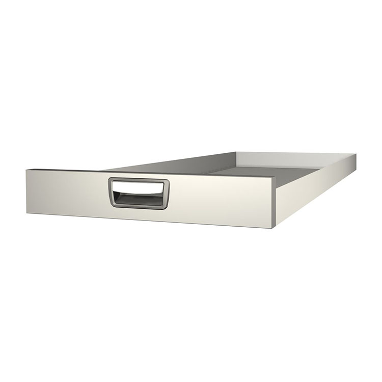 Tiroir extra-long robuste à monter dans une structure de bloc-tiroirs. Le tiroir en aluminium possède des roulements à billes en standard et la combinaison de roulements fixes et flexibles rend le tiroir stable et facile à utiliser.