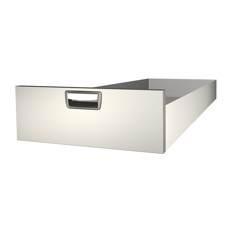 Tiroir extra-long robuste à monter dans une structure de bloc-tiroirs. Le tiroir en aluminium possède des roulements à billes en standard et la combinaison de roulements fixes et flexibles rend le tiroir stable et facile à utiliser.