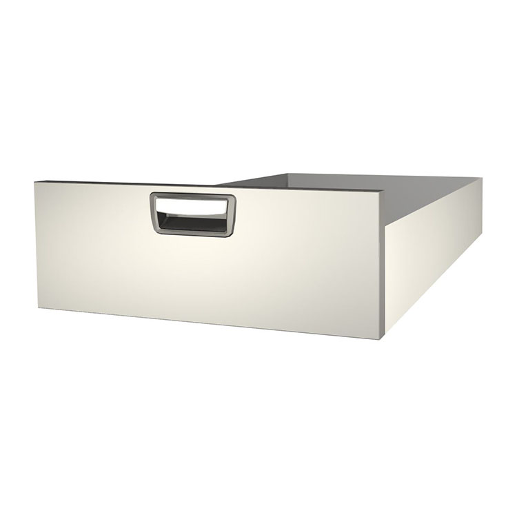 Tiroir extra-long robuste à monter dans une structure de bloc-tiroirs. Le tiroir en aluminium possède des roulements à billes en standard et la combinaison de roulements fixes et flexibles rend le tiroir stable et facile à utiliser.