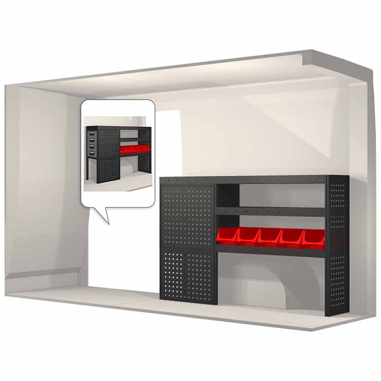 Ce système d’aménagement a été spécialement conçu pour assurer une adaptation optimale ainsi que la meilleure fonctionnalité et sécurité possible. Il a été développé pour un usage professionnel, est flexible et est destiné à des métiers de services dans des domaines variés. Toutes les étagères sont équipées de tapis caoutchouc, et tous les tiroirs de tapis mousse. Les composants d’assemblage et de fixation sont inclus.